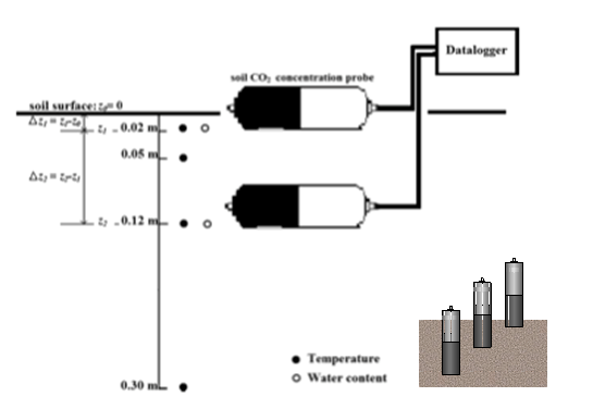 標(biāo)準(zhǔn)配置為3層(SCG-3)土壤剖面CO2、土壤水分和土壤溫度監(jiān)測(cè)