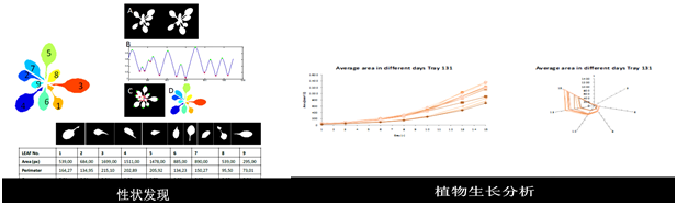 2.6 可測量葉面積、周長、寬度等形態(tài)測量和生長分析,可進行顏色分割分析等