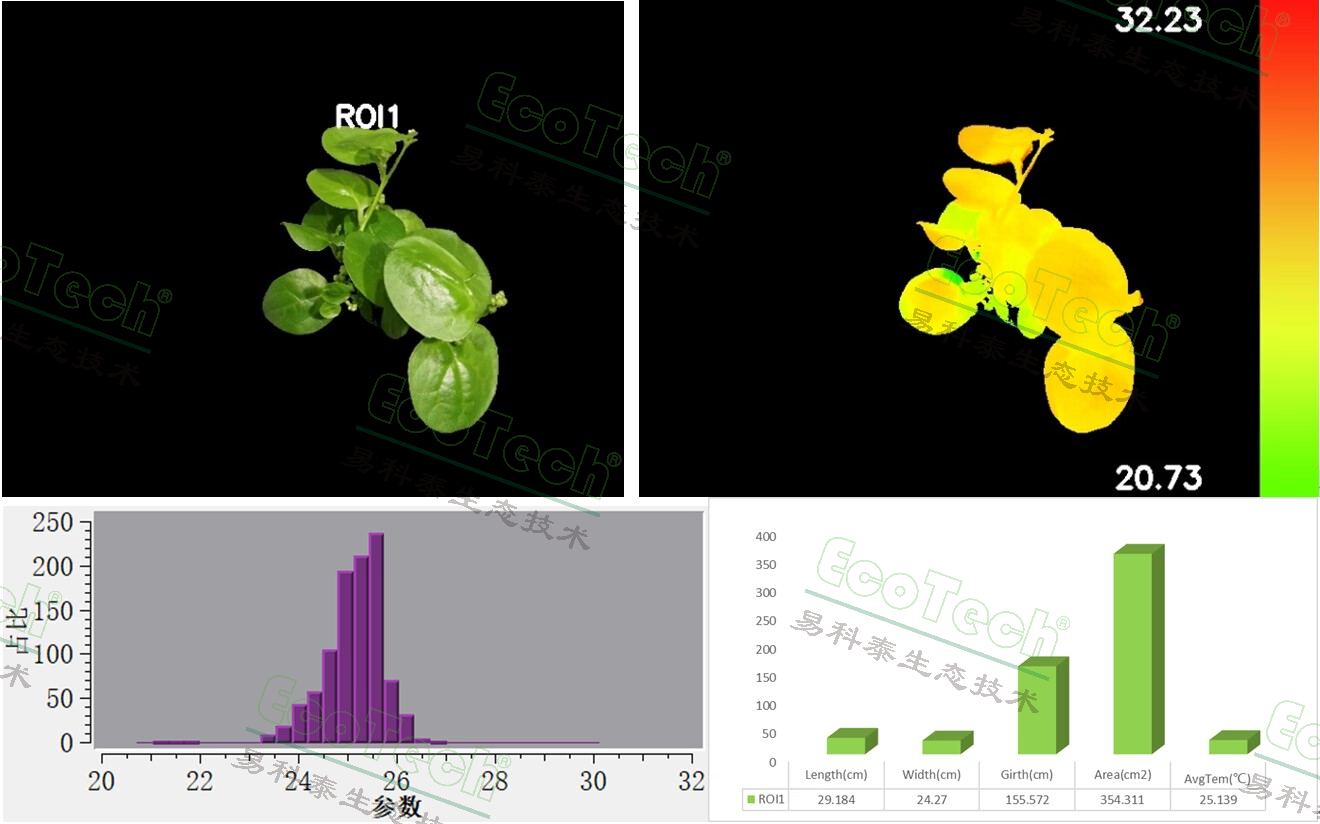 紅外熱成像技術(shù)已經(jīng)廣泛應用于植物表型分析(如氣孔動態(tài)等)、動物生理生態(tài)、生物醫(yī)學測量檢測(包括體檢等)、智慧牧場、生態(tài)觀測等各領(lǐng)域。但在實際應用中,紅外熱成像存在分辨率低、影像不清楚、很難與背景或環(huán)境區(qū)分等問題,特別是對與環(huán)境溫度近似的目標如植物、昆蟲等,單靠紅外熱成像很難精確提取目標信息和“影像”并進一步進行ROI選區(qū)分析。Thermo-RGB是基于易科泰公司研發(fā)的紅外熱成像與RGB成像融合分析技術(shù)而開發(fā)的一體式成像儀,有效融合了紅外熱成像的熱輻射信息/溫度信息和RGB成像的顏色信息和高分辨率優(yōu)勢,克服了紅外熱成像分辨率低、不清晰、難以進行目標提取/圖像分割等缺點,可以方便地進行圖像分割處理、提取清晰的圖像信息,并進一步精準運行ROI選區(qū)分析??蓱糜谥参锉硇头治?、智慧農(nóng)業(yè)、種質(zhì)資源檢測、近地遙感與無人機遙感、生物醫(yī)學檢測、畜禽遙感測量表型分析等。