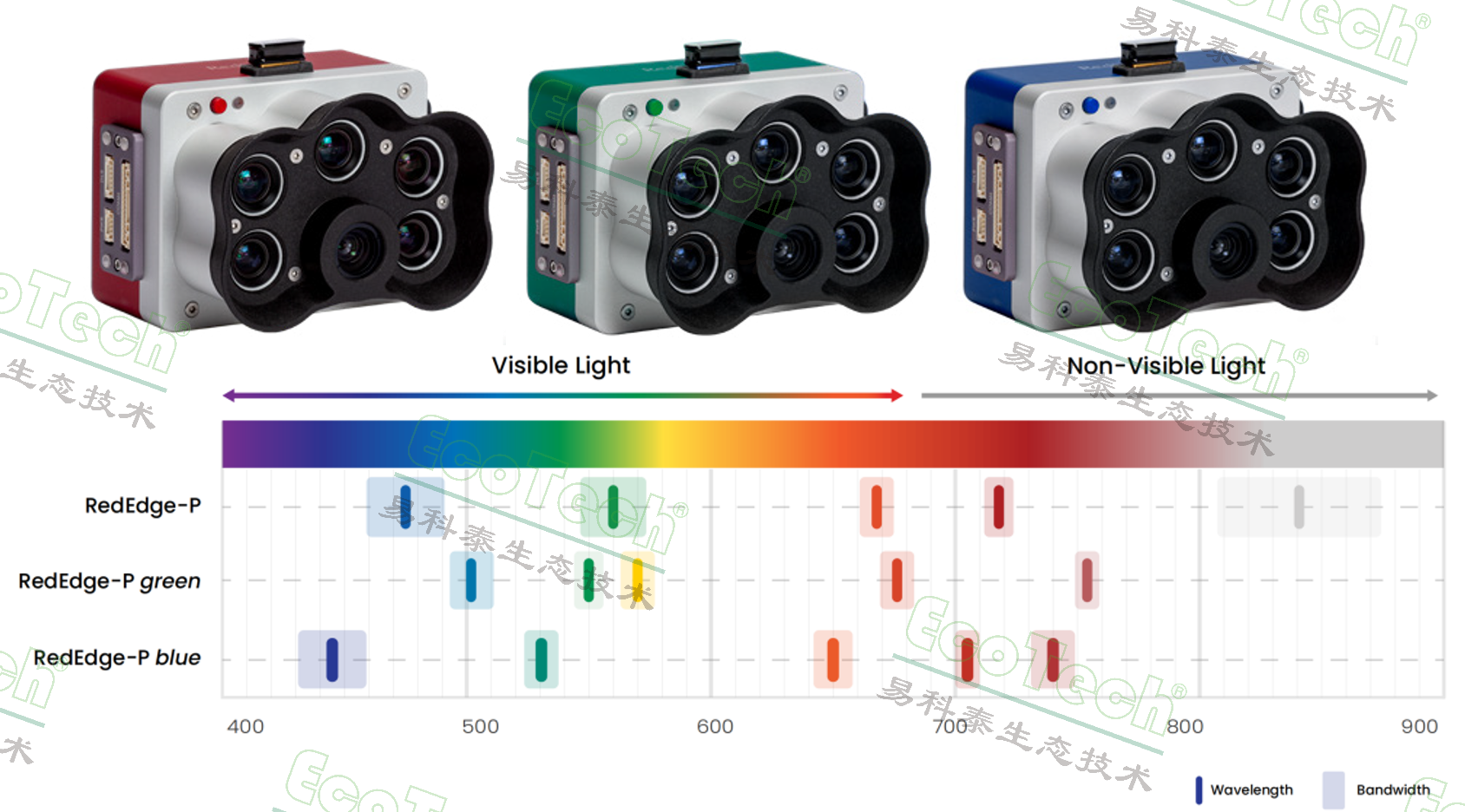 圖:RedEdge-P系列多光譜相機(jī)及其波段范圍