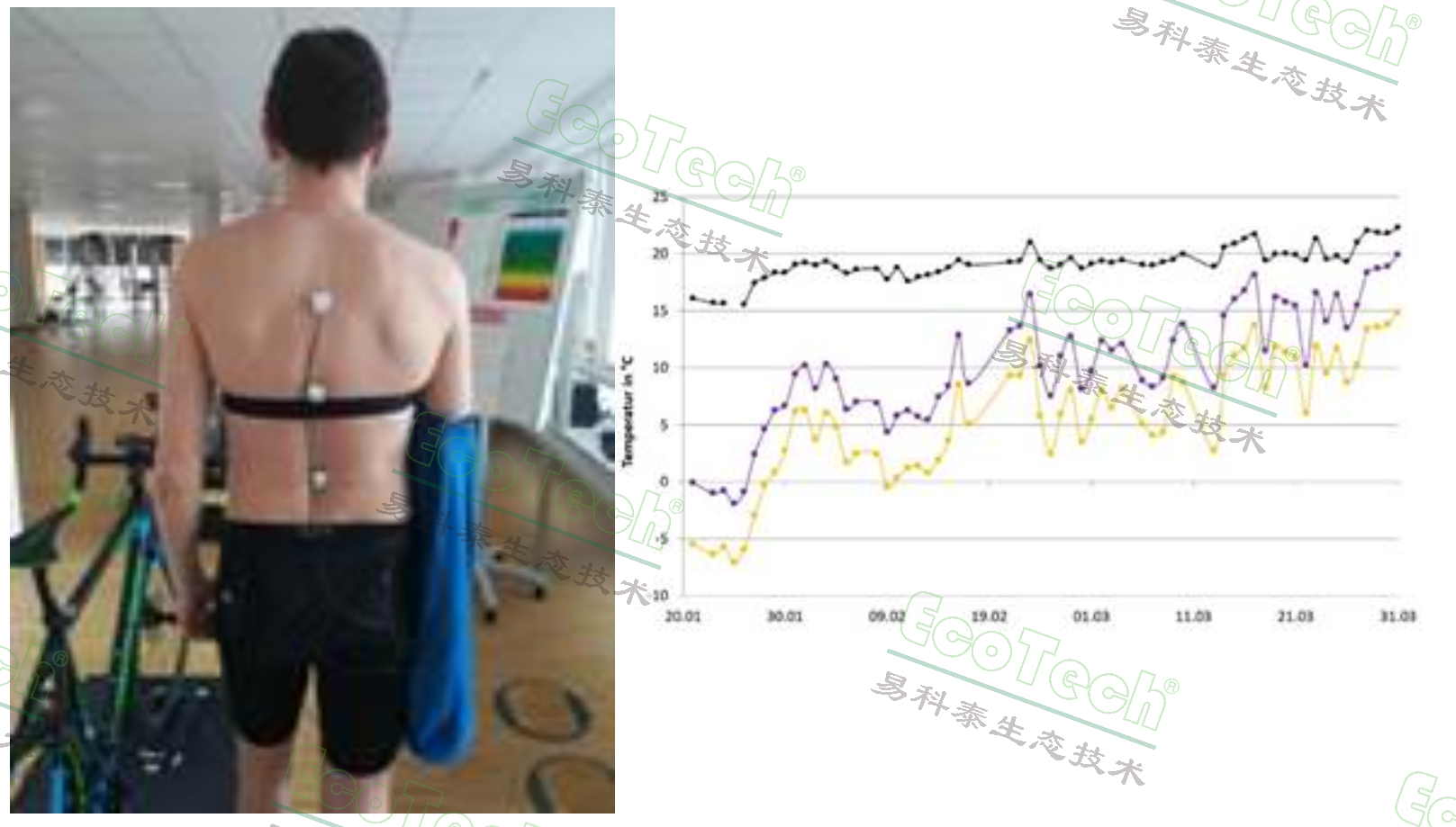 5) 可選配可穿戴式體溫與活動數(shù)據(jù)采集器,高時間分辨率監(jiān)測身體不同部位三維活動、多點體溫、及出汗情況等