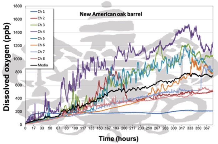 案例7:西班牙Valladolid大學利用RFO2熒光光纖氧氣測量技術(shù),監(jiān)測葡萄酒橡木桶O2吸收——對葡萄酒品質(zhì)至關(guān)重要但一直以來缺乏科學的了解。葡萄酒在橡木桶內(nèi)(3-24個月)的過程溶解氧至關(guān)重要,因為O2調(diào)節(jié)了葡萄酒整個的熟化過程。