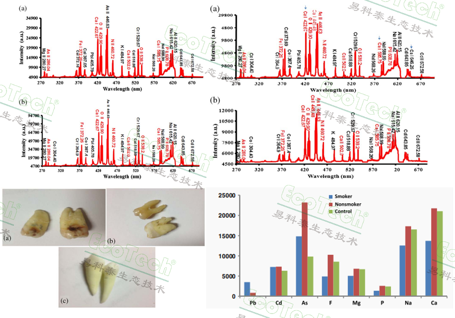 研究人員(Alhasmi A M,2015)采用激光誘導擊穿光譜(LIBS)技術,對吸煙者與非吸煙者的牙齒進行元素檢測,以分析有毒元素濃度與牙周參數的關聯,深入探究吸煙影響牙周疾病的作用機制。研究結果顯示,吸煙者牙齒根部的有毒元素(Pb、Cd、As)積累量顯著高于非吸煙者,而這種積累可能通過加劇臨床附著喪失,進一步破壞牙周組織。吸煙者長期吸入煙草煙霧后,重金屬會經呼吸道進入體內循環(huán),最終沉積于牙齒根部(尤其是牙周組織受損區(qū)域)。這正是吸煙者體內此類元素濃度顯著高于非吸煙者及對照組的核心原因,且呈現“吸煙量-積累量”的劑量依賴關系。該研究明確揭示了吸煙與牙齒有毒元素積累及牙周疾病之間的關聯,為牙周病風險評估提供了一種新的檢測手段。