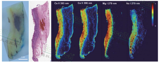 惡性黑色素瘤的FireFly LIBS元素分布成像結果:Ca、Mg元素在病變位置含量異常增高