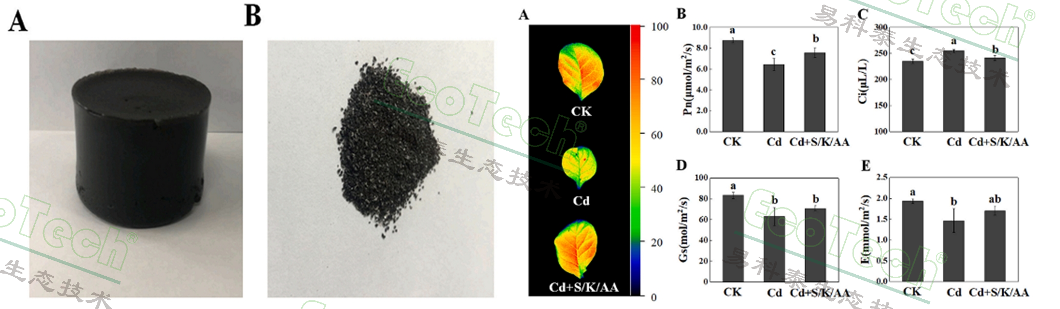 左圖:S/K/AA水凝膠;右圖:葉綠素?zé)晒獬上駡D及光合相關(guān)數(shù)據(jù)
