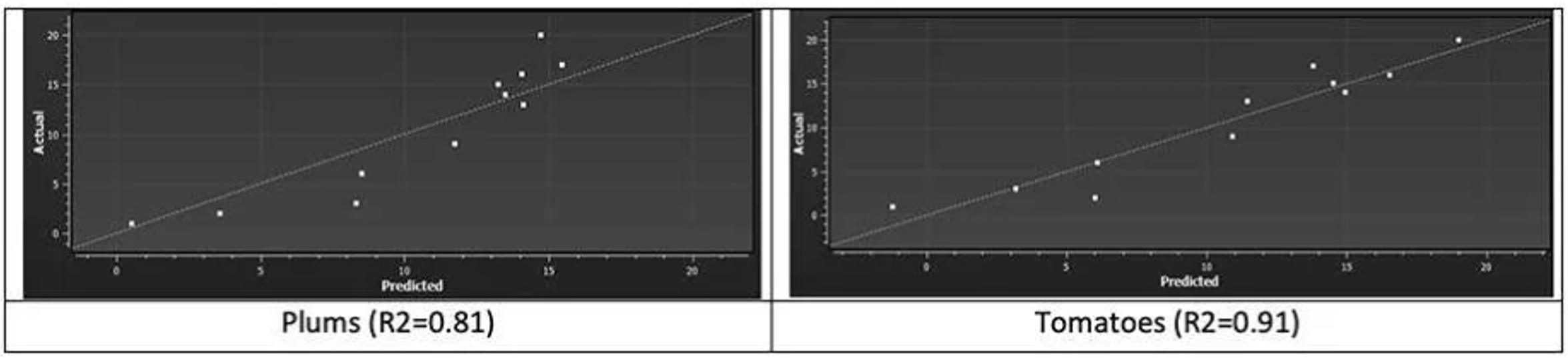 圖5:兩個模型的實際值與模型預測(測量李子和番茄的新鮮度)